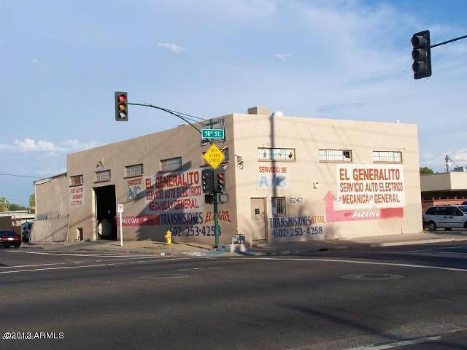 Building on the corner with a vacant lot to the East and one to the South Three lots total. The property is all C-2 current use it an automobile repair shop.