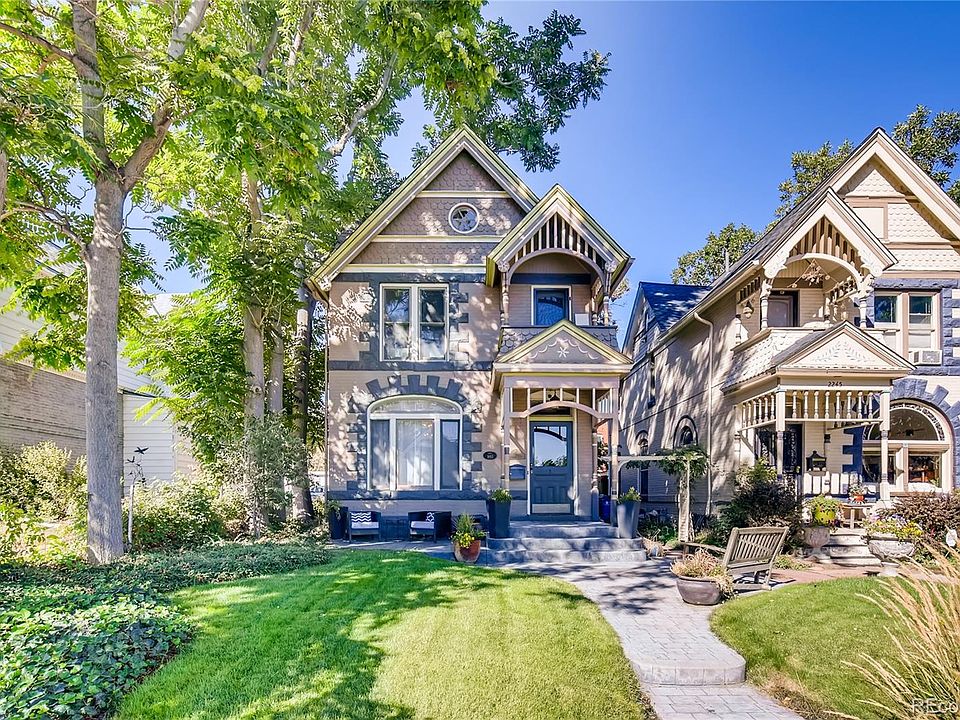 This beautiful Queen Ann style home near Sloan's Lake offers historic charm with all the modern conveniences. Remodeled from top to bottom this home is comfortable with an open floor plan that is perfect for entertaining. The main level is flooded with natural light and welcomes you with gleaming hardwood floors, high ceilings and original woodwork. The kitchen features stainless appliances, a gas range, large custom pantry, solid surface counters, eat-in kitchen and open to the dining and living rooms. The back of the house has been outfitted with a custom built mud room with a bench and cabinets and a second cozy dining area which works well as an office or study area. French doors open to the professionally designed backyard with a built-in grill, Zen like water feature, gas fireplace, pergola and lighting. The second level is very unique and open. As you top the stairs you enter a huge 2nd living area with plenty of room for a sectional couch and entertainment center and a workout area. The office is large, filled with natural light and soaring 20-foot ceilings. Three bedrooms with nice sized closets, new flooring and a brand-new beautiful bathroom round out the 2nd floor. The third level features the primary suite. The entire level is open and large with two dormers that create interesting spaces for a reading area, music area or spaces for your clothes dresser(s) that are out of the way. His and Her walk-in closets and a giant 5-piece bathroom with a vaulted ceiling, dual sinks, Euro soaking tub, walk-in steam shower and radiant floor heat. It's a spa like suite on the top of the house away from it all! The front and back yards are professionally landscaped with automatic irrigation and fencing. The detached 2-car garage is newer and offers tons of storage in the attic. The basement is unfinished and provides additional storage with good ceiling height. This home has been thoughtfully updated and loved for over 130 years. Now it can be yours.