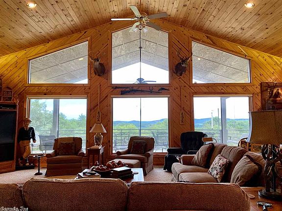 LARGE cabin on 39 acres joining the NATIONAL FOREST near Calico Rock! This 4 bedroom/3 bath cabin features a large living area with vaulted wood ceilings, several windows offering an amazing view of the mountains, & a native stove gas fireplace. The kitchen features granite counter tops, custom cabinets, an island, & a coffee bar! The master suite has vaulted wood ceilings, walk in tile shower, jaccuzi tub, large vanity, & a walk in closet. There is also a two car garage with a workshop and so much more!