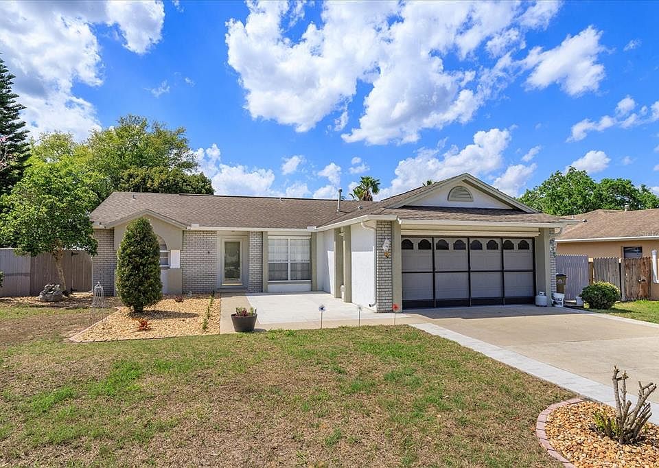 Located in the Greater Groves community on Hwy 27 just a couple of miles north of Hwy 192 in beautiful Lake County. Well maintained, this delightful three-bedroom home is close to shops, gas station, restaurants, schools, and the new South Lake Hospital. The widened driveway leads to a small paved area at the front of the home and a new storm door lease into the home. The split floor plan features the master bedroom (with en suite) to the left, living kitchen and dining at the center of the home, and bedrooms two and three sharing a house bathroom are on the right-hand side. The living area provides access through sliding patio doors onto the rear screened porch perfect for relaxing or entertaining. Outside two further paved patio areas and a completely fenced rear yard also benefit from a 12 x 10 garden shed with electricity making it an ideal workshop as well as storage for the hurricane shutters. The roof, hot water tank, microwave, washer, and dryer have all been replaced. A new A/C unit and refrigerator were installed in 2020. Minutes from Disney and all the Central Florida attractions the property would make a great primary residence or snowbird retreat.