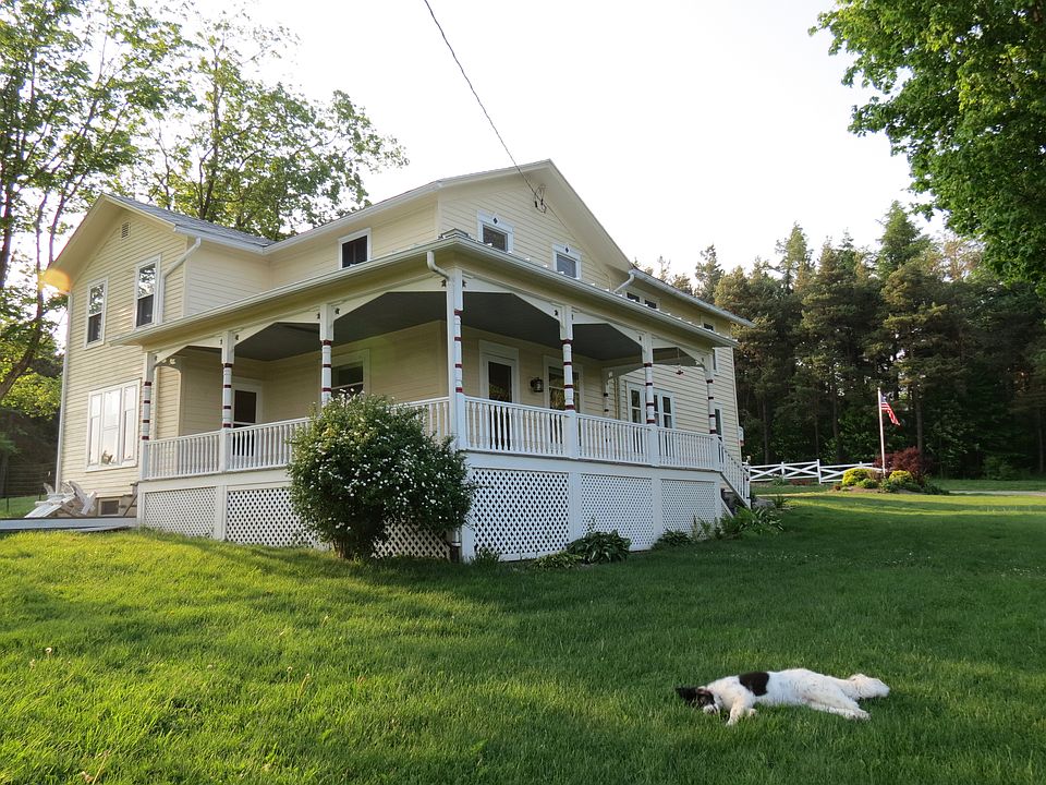 Well maintained historic colonial nestled above Keuka Lake on just under 16 peaceful acres. Short drive to NYS boat launch, and public NYS Hi Tor recreational lands. Year round spectacular views.Ornate trim throughout the interior of the home compliments that old school charm with modern updates. Very comfortable home boasts updated, family room,laundry room,guest bedroom, master bath and master bedroom with vaulted ceilings. 3 bedrooms with possible 4th, adequate closet space & workshop/storage area. 1st floor living: formal dining room,laundry room,office,family and great room. Adjoining 2 bedroom partially finished cabin with water, sewer and electric, w 3/4 ac well stocked pond . Newer storage barn