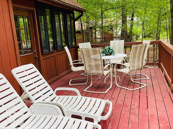 This charming 3-bedroom, 2-bath chalet is nestled in a vacation rental-friendly area, ideal for year-round living or as a lucrative short-term rental. With a 3-season room, large deck, cozy fireplace, loft, and a serene wooded lot, it's fully furnished and ready for immediate rental. Enjoy the best of the Poconos, with access to skiing, pools, lakes, tennis, fishing, and more in the region's top-rated community. Close to Shawnee skiing, Bushkill Falls, Delaware Water Gap, and vibrant local dining, this home is both a tranquil retreat and a smart investment opportunity.