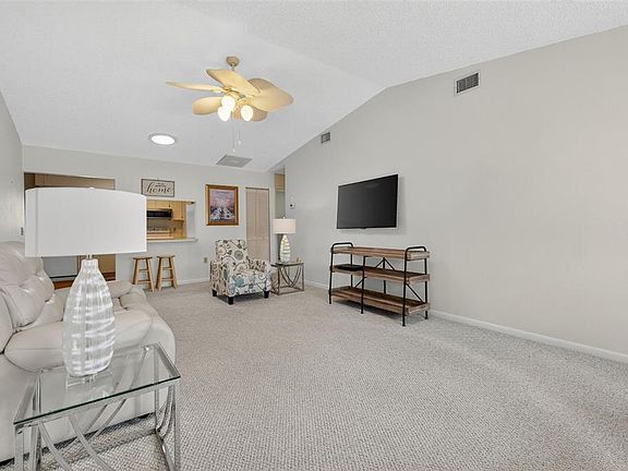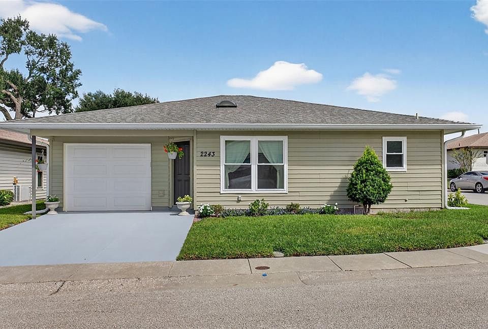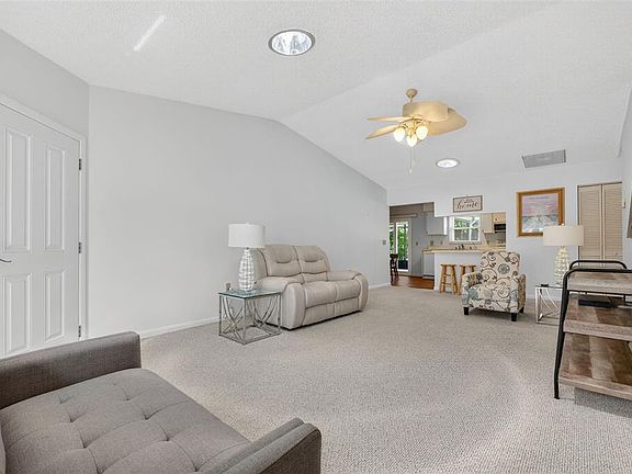 Under contract-accepting backup offers. Meticulously maintained and move-in ready! This budget-friendly home is packed with valuable updates, including a new roof (2019), hurricane code garage door (2021), New South brand windows and glass slider (2020) and A/C (2016). There's also a Kinetico Water System (installed 2019) that features both a water softener with dechlorinator and an under-sink reverse osmosis filter for great-tasting water. The interior offers neutral colors to coordinate with any decor, a spacious living room with high ceilings, a dining area off the kitchen and a breakfast bar with space for stools for quick meals on the go! The convenient inside laundry closet has storage and a washer/dryer (included!) hookup. Just off the dining area is a 13x10 screened patio with an additional outside patio area, perfect for a grilling spot. The patio has a double-door exit, making it the perfect place to store your golf cart! Situated on a corner lot in a low-traffic area, this home also includes an oversized single-car garage and reflects pride of ownership throughout!