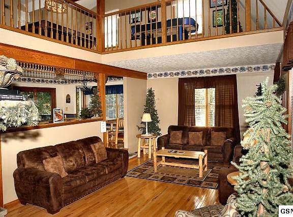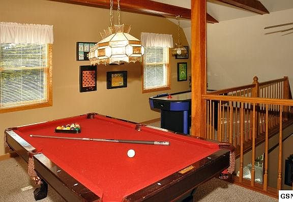 Surround yourself with country elegance in this 6 bedroom/4 bath complimented with outstanding views and total privacy all on 6.8 private acres. Located just 2.7 miles from Dollywood and Splash Country and all the outlet malls. Loaded with amenities to include Pool Table, Air Hockey Table, and covered Hot Tub on front deck with outstanding views. Furnished to the hilt in a beautiful country setting with each bedroom presenting it own theme. King Master bedroom is on the main level with full bath and tub. Two Queen Bedrooms with one bath on the upper level and three King Bedrooms on the lower level. This unit is perfect for large family or just owningyour own estate. Beautiful surrounding grounds with easy access in an out. Fully paved including all surrounding roadways to and from the Pigeon Forge and Gatlinburg area. Great House to have with the utmost privacy. Black Beary Lodge Gatlinburg Cabin Rental