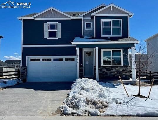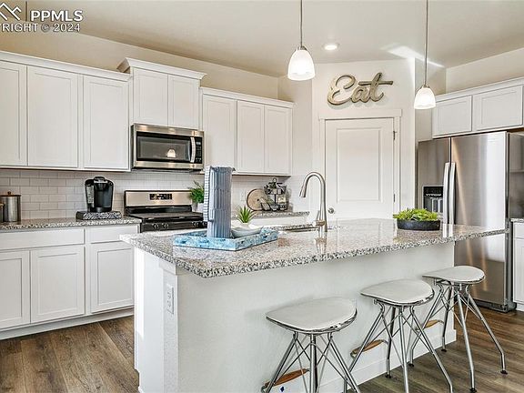 This brand-new two-story floorplan is the perfect spot in Monument to call home. The open concept on the main level features a stunning kitchen featuring an island, granite countertops, and stainless-steel appliances. The spacious upstairs features three cozy bedrooms with quartz countertops in the bathrooms, a dedicated laundry room, and excellent storage. Enjoy modern luxuries like air conditioning, a tankless water heater, and America's Smart Home Package for added convenience. Includes front yard landscaping with irrigation and side wing fencing.