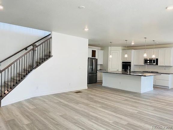 This gorgeous Prescott 2 story home features 5 beds, 4.5 baths, dining, great room, kitchen, loft/game room, unfinished basement and more. Beautiful upgrades and finishes throughout including cotton white cabinets, slab quartz countertops in Marengo, gorgeous opulence oak luxury vinyl plank flooring, spacious covered deck and more. Amenity rich Inspiration provides the best of Colorado living with all the latest technology. Lennar provides the latest in energy efficiency and state of the art technology with several fabulous floorplans to choose from. Energy efficiency, and technology/connectivity seamlessly blended with luxury to make your new house a home. What some builders consider high-end upgrades, Lennar makes a standard inclusion. This community offers single family homes for every lifestyle. Close to dining, shopping, entertainment and other amenities. So much to see and do in this charming community ? something for everyone. Easy commute to DIA, E-470 and beyond. Come see what you have been missing and find your inspiration today! Don't wait ? this community will sell out quickly! Floorplan and walkthrough tour are a model only and subject to change.