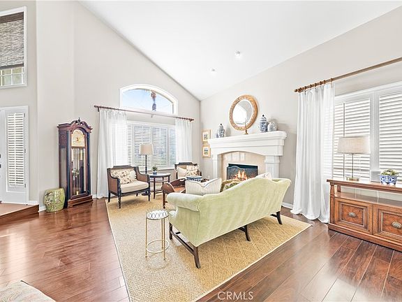 Discover your dream home within the prestigious guard-gated community of Canyon Crest Estates in highly sought after Mission Viejo. This inviting 5 Bedroom, 3 Bathroom residence offers a unique blend of sophisticated comfort and unmatched luxury. Step inside to experience soaring ceilings and an abundance of natural light, creating a warm and welcoming atmosphere. The spacious living room, features durable wood-look tile flooring, designer paint, and a striking statement piece fireplace, provides the perfect space for relaxation. Adjacent is the formal dining room which has great space and light from a large window overlooking the entertainer’s patio deck. Next is a updated light and bright chef’s kitchen with a center prep island with an inset cooktop and bar seating and an oversized bay window eat-in nook, stainless steel appliances, updated cabinetry, hardware and fixtures, an abundance of prep and storage space and all of this is open to a grand family room where another fireplace, and access to the entertainer’s backyard, await. Enjoy indoor/outdoor living at its finest with a completely custom full yard hardscape overhaul that features multiple seating areas, a large fireplace and enviable seclusion - ideal for entertaining, family gatherings and playing. A convenient downstairs bedroom, currently set up as an office, and a full bathroom offer flexibility and accessibility. An inside laundry room with a task sink, ample storage and garage access completes the lover level. Upstairs the primary suite boasts a luxurious bathroom with a dual sink vanity, a step-in shower, a soaking tub, a privacy water closet door and dual closets. Three additional bedrooms, each with great space and light, and a well-appointed bathroom with dual sink vanity complete the living spaces. With designer paint, upgraded flooring, recessed lighting, plantation shutters and more, this home truly has it all. Living in Canyon Crest Estates enhances your lifestyle with exceptional amenities: a fully equipped gym, multiple pools, spa, sauna, sports courts, BBQ area, playground, clubhouse, and tennis courts. Plus, enjoy easy access to Mission Viejo Lake for boating, fishing, and community events. Welcome to your new home. Welcome Home.