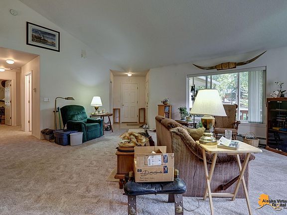 This sweet home in Chugiak has been wonderfully maintained and is nestled in a quiet neighborhood. This home features and open concept, vaulted ceilings, beautiful fireplace, tons of storage in the kitchen and a master bathroom with separate tub & shower. Outside there is a greenhouse, nice sized back deck and firepit area. Perfect home to be close to Eagle River and still have peace & quiet.