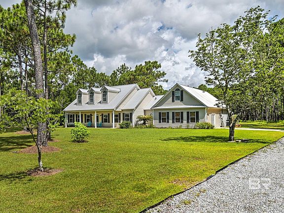 Gulf Shores Estate Sized home on 3 acres is now FOR SALE! SHORT TERM RENTAL IS ALLOWED! Own your own business and need space? Wanting a place to spread out with lots of privacy? Want a beautiful short tern rental of venue? THIS IS IT!! This home checks all of the boxes! 3482 SQFT- 3 bedrooms, 2 1/2 baths. Giant bonus room that could be another bedroom, office, or kids area! Close to restaurants, shopping, and the beach express, yet quiet, country living. Only 6 miles from the beach. Enjoy fishing your private pond. Did I mention privacy?? Open kitchen with large island, granite countertops, and stainless appliances. Split floorplan, metal roof, 2 HVAC units. Very unique and hard to find. Priced right! Call today for your showing!!