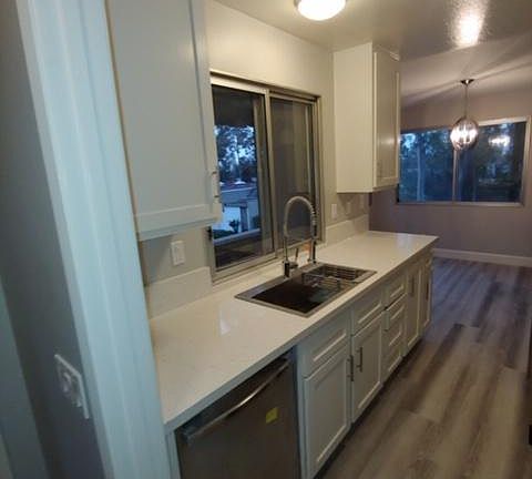PLEASE CALL FOR MORE INFO AND TO MAKE AN APPOINTMENT TO SEE THIS PROPERTY Newly renovated condo in a quiet forest setting, this condo is a must see. This end unit features 2 BD 1 BA with 1 single car garage and carport with additional storage. The kitchen features white cabinetry, quartz counters, and stainless steel farm sink, and yes, the appliances are included. The light and bright living room with fireplace flows into the dining room and opens to a large covered balcony with spectacular views. Upgrades include new flooring, baseboards, fresh neutral paint and custom lighting, and inside washer/dryer hookups. The large bathroom has been updated with a tub/ shower surrounded by floor to ceiling tile, freshly painted vanity with custom rectangular sink, fixtures. Both bedrooms have large closets, one of which is a walkin. Laguna Village Association offers a resort-style experience with loads of amenities such as clubhouse, two pools, two spas, shuffleboard, gym, BBQ & picnic areas, volleyball, basketball, playgrounds and tennis courts. Award winning Saddleback Valley schools. Home is centrally located to the 5 and 405 freeways along with shopping, schools and entertainment. Please call to Schedule your appointment today. **PLEASE CALL TO SPEAK TO OWNER** No smoking No pets`. Must have good credit ` positive rental history