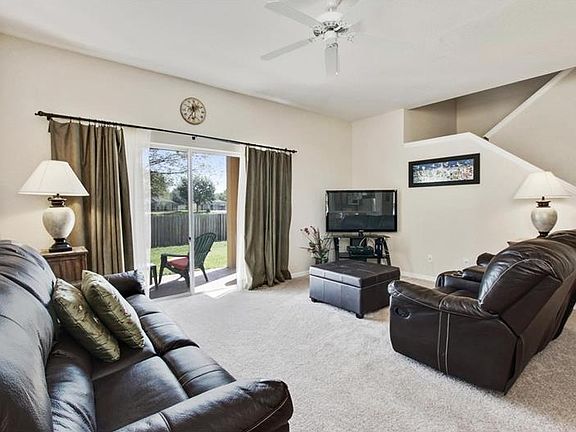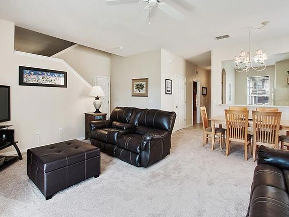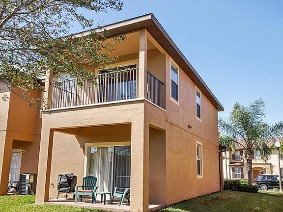 This lovely townhouse has everything you desire with two master suites and entrances. This townhome has a spacious living and dining room combo that allows for entertaining and eating while creating memories. It has never been leased during current ownership which means it is in excellent condition. The AC unit is new. There is a conservation area behind the large backyard that allows relaxation to meet you at the front and rear patios for tranquil moments. Regal Palms has various amenities. Regal Palms provides a resort lifestyle atmosphere. The guard gated entry makes this a secure and private location. Its clubhouse has an incredible community pool, spa, lazy river, water slide, full bar with a restaurant area, game rooms, and a fitness room. Guest services provides availability twenty-four hours a day and seven days a week. This location is only fifteen minutes from major theme parks, highways, grocery shopping, dining, and other conveniences. This would make a great primary home, vacation home or short term rental.
