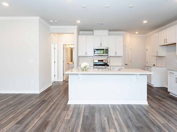 Luxury brand NEW single house at convenience location (10 min to RTP, 10 min to Duke Campus, 15 min to RDU airport) available for rent. An open floor plan with 4 spacious bedrooms, 3 full bath and one loft. The first floor includes an in-law suite with full bath. The spacious owner's suite boasts a tray ceiling and a walk-in closet. A huge island with quartz countertops, stainless steel appliances (Brand new refrigerator, washer and dryer), a gas range hood, a stylish tile backsplash and a huge walk-in pantry with wood shelves. Park/Greenbelt view backyard, Big Porch, best location in the community.