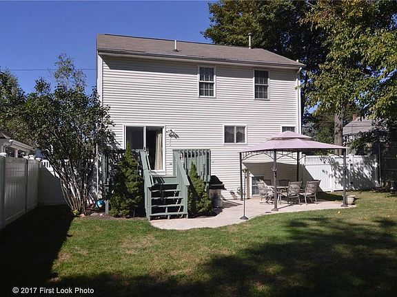 This well appointed Colonial in the beautiful Meshanticut section of Cranston, is near to all of the local conveniences, (walking/bike path, wonderful shopping, great eateries, major routes and coffee shops) and is rich in designer flair! This 3 bed 1.5 bath home has a beautiful open concept plan with stainless remodeled ceramic kitchen, center island/breakfast bar, with walk out to deck, overlooking an impeccably maintained fenced in, level yard. Beautiful stamped concrete patio and walkway too! Formal living and dining are spacious and warm, perfect for guests. The lower level is large, and perfectly finished in wonderful tones and great for family movies, games, or a relaxing evening enjoying some music. The master bedroom features a large walk in closet and versatile Pullman bath. This property also features an alarm system, and central AC! Take a leisurely stroll to Meshanticut Park and lake this fall. Well loved and neat as a pin, this beauty will not be around long. Will NOT disappoint!
