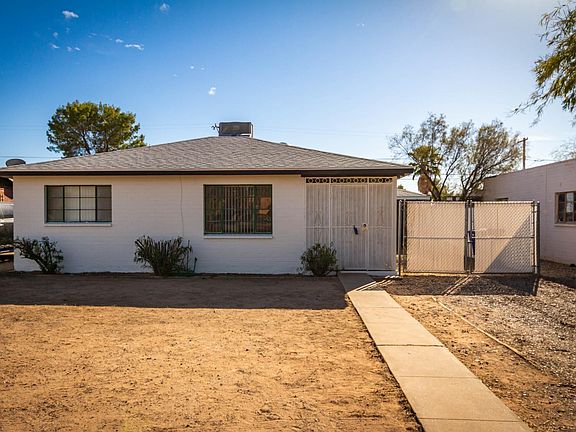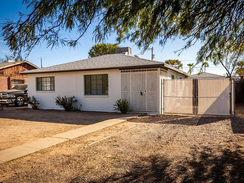 Incredibly charming 2 bedroom, 1 bath home with tile floors throughout, soothing palette, window blinds, & formal dining area. Tiled kitchen counter, double sink, patio access, & white cabinets w/hardware. Generous size bedrooms, large closets, & pristine retro updated bathroom. Large interior laundry room. Charming screened in entry. Large backyard with room for a pool or guest house, covered patio, carport, RV Gate, & decorative stone. Close to Downtown, U of A, Reid Park & more.