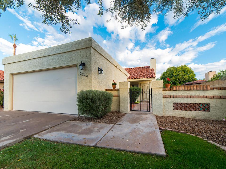 You'll love this charming home and quite neighborhood. Gated courtyard entry. Great room boasts vaulted ceilings, rustic wood beam and cozy fireplace. Kitchen features large pantry, SS/Black appliances, breakfast bar, and wood cabinetry. Master suite has it's own backyard exit to the patio, dual closets, and custom walk-in tiled shower. This home is on a coveted North/South facing lot, you'll receive lots of non-direct natural sunlight. Dual pane windows for comfort and energy savings. This home is within walking distance of the community pool, spa, and large park. You are minutes from schools and shopping. Avoid traffic by living less than a minute from the freeway (I-60).