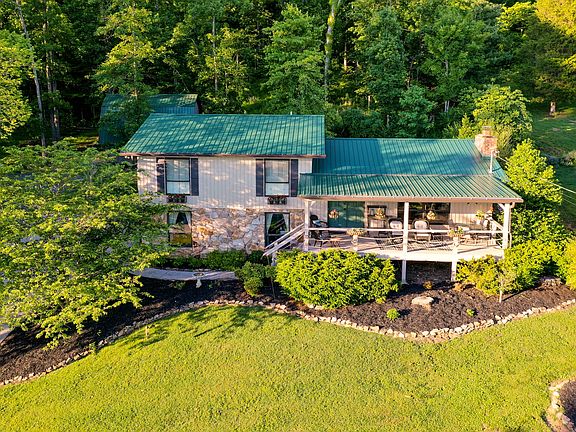 Lakeside beauty! This 3 bedroom, 2.5 bathroom home sits steps away from a quiet cove off the main channel of Lake Loudon. New kitchen with solid wood, soft close cabinets with quartz tops and double convection ovens (2016), solid floors and doors throughout (2016), new HVAC (2017), fantastic large front porch overlooking lake (2018), walk out bonus space downstairs could easily convert to a small living space for returning kids or aging parents or be an AirBnb income generator. Plantation blinds highlight large Low E double hung windows and a 550 sq ft storage barn with electricity gives plenty of room to store kayaks or jetskis. Perfect for entertaining, the home is situated on a double lot with sweeping views of the lake off the front and beautiful quiet woods off the back in this safe, established neighborhood. Private community dock, ramp and boat storage is right across the street; all this and no HOA’s!