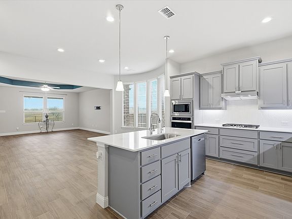 The gourmet kitchen is equipped with granite countertops, stainless steel appliances, a walk-in pantry, and ample cabinet space perfect for cooking, entertaining, or enjoying a quiet breakfast with views of the greenbelt. The spacious primary suite includes a spa-style walk-in shower, dual sinks, and a large walk-in closet. Secondary bedrooms are generously sized and ideal for guests, kids, or a home office.