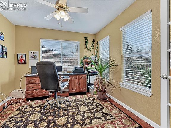 Beautiful, pristine, tons of space and all in a townhome! Backs to hundreds of acres of open space and nestled in a quiet valley near UCCS. This is a meticulously cared for one owner home. Enter the home to an inviting entry way with a bright and airy office. Proceed to the main level living area with a gas fireplace and 2 open and inviting sitting areas. This joins a fantastic eat in kitchen and dining area with a counter bar. Walk out to the private deck as an extension of this living space. Up stairs to the master bedroom with a 5 piece master bath, huge walk-in closet, gas fireplace, and fabulous open space views. The other bedrooms are generous sized and share an attached divided bathroom. Downstairs to the basement with a large family room and wet bar area. An addition room set up for wine storage but could double as what ever you like. Additionally there is one more large bedroom with an attached full bathroom and huge walk-in closet. All of this on a quiet cul-de-sac location with views of the rock formations. UCCS is just around the corner and you can easily walk or bike to campus in a few minutes. Conveniently located near main streets, University Village shopping area and an easy commute to anywhere in the city. Come see this beautiful home today!