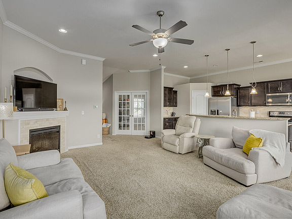 - Features: Fireplace(s), Carpet Flooring, Ceiling Fan(s)