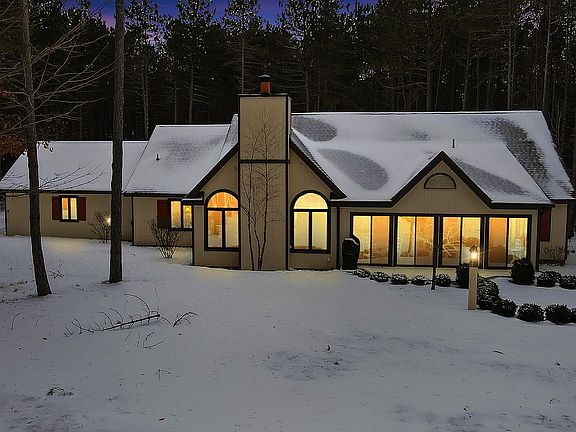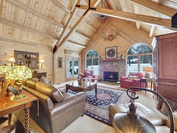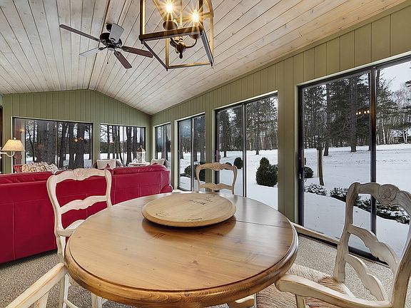 A remarkable move-in-ready, golf course home in Birchwood Farms Golf & Country Club. This spacious ranch sits at the start of The Farms 4th hole. Upon main entry, the living room catches the eye with its cathedral, post & beam ceilings, gas fireplace, knotty pine finishes and wet bar. The kitchen and dining room have an open concept layout with an expansive opening off the living room. The renovated kitchen is complete with stainless steel appliances including a French-door Kitchen-aid refrigerator and Whirlpool Gold wall oven/microwave, stovetop, and dishwasher. A private den around the corner can be utilized as a 4th bedroom with the half bath conveniently next to it and the laundry room/mud room features a new washer/dryer. The rustic, interior design flows down the hallway off the living room. Two large bedrooms with picture windows and large closets share the newly renovated hall bath. The master suite, located privately at the end of the hall, is very spacious with natural light spilling in. The renovated master bath offers a walk-in shower and dual sinks. Two walk-in closets provide ample storage. Sneak away from the master onto the oversized 3 season porch, also accessible off the living room, and enjoy the comfort of the indoors with the visibility of the outdoors. From the porch, deck, flagstone patio or living room, take in the sites of parties teeing off and appreciate the low maintenance gardens set up with drip irrigation. Inside, hardwood floors and new 100% wool and wool blend carpeting flow throughout. Plenty of storage is available with multiple closets, sufficient cabinetry, a 2.5 car garage, and an unfinished basement. There is also potential for finishing the basement into a family room. Required with Birchwood homeownership, a one time initiation fee of $10,000 and monthly dues of $424 grant you full benefits of 27 holes of pristine golf, tennis, fitness center, swimming pools, trails & more! Stained glass excluded. Many furnishings for sale.