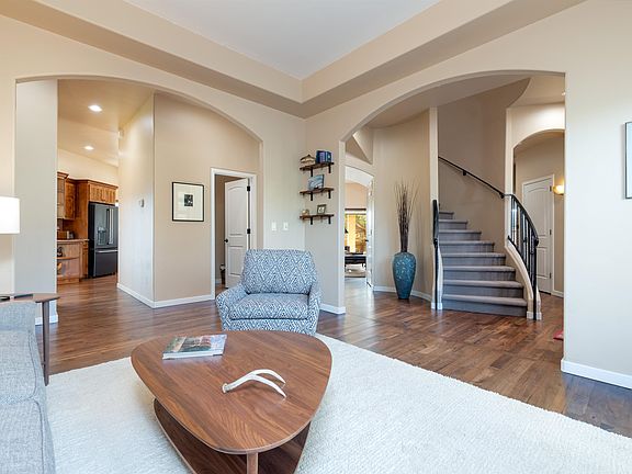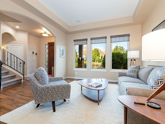 In search of a home with stunning 360 degree views??? You have found it! There is just not a window in this home that does not have a spectacular view, it has been expertly maintained inside and out. With updated carpet, lighting, paint and appliances, you can move right in. Outside, you'll find just under an acre of meticulously landscaped outdoor space with lots of patio space, a pond and water feature plus fire pit and second story covered/open deck space with hot tub so you can soak as you stargaze. Inside you'll find contemporary touches paired with traditional finishes, a smooth floorplan from living area to two main level bedrooms, upstairs features two bedrooms, each with ensuite bath and access to the huge deck where views are aplenty. The space off of the laundry is a temperature controlled wine room! Close proximity to hiking, biking and golf. Book your private showing today!