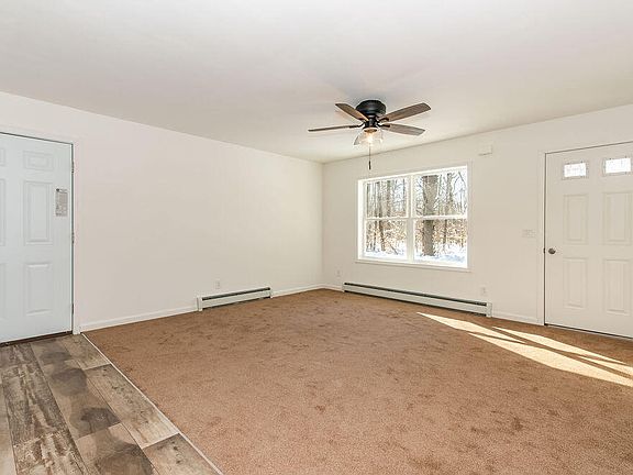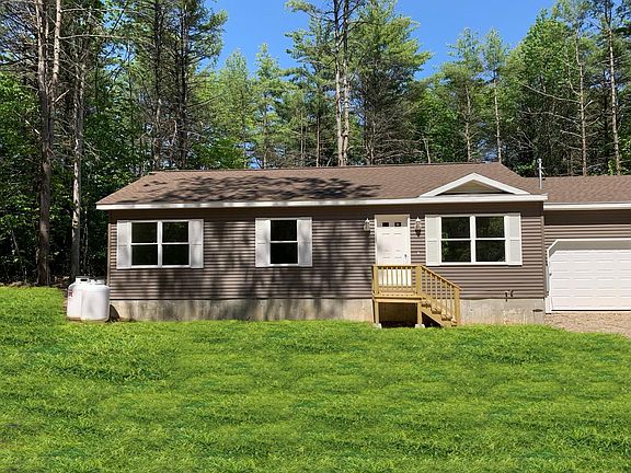 Welcome to this newly built 3 bedroom 1 bathroom Ranch style prefab modular home with full basement and attached 2 car garage situated on 2.10 acres, with a long driveway to set the home off the main road for privacy. Beautiful laminate floors and new carpet in the bedrooms, all in neutral tones. Come see this wonderful property, and turn it into your home. Minutes to any of the many lakes, hiking trails and snowmobile trails!