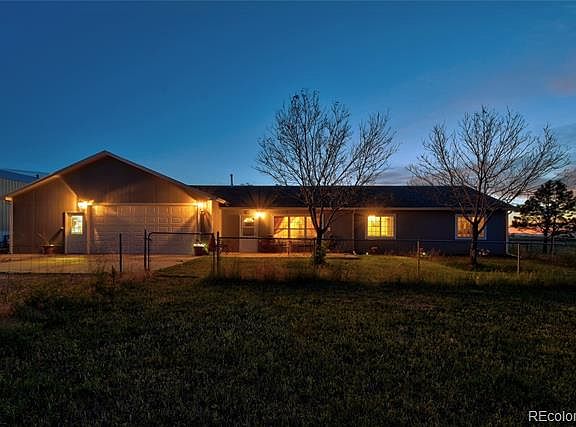 Fantastic 5 acre ranch with picturesque view of pikes peek. Main house has 3 bedrooms with large master suit, two bath rooms main living has vaulted ceilings. With front concrete sitting area porch and fenced back yard and patio area along with over sized 2 car attached garage.Large 1500 sq. ft. workshop with bathroom, office and loft, 14 foot garage door for easy RV indoor parking along with second standard garage door and standard access door. Shop is heated along with 220 amp outlets.Your horses will also be pampered with a wonderful 3 stall stable barn complete with garage door access for hay storage and large tack room.Property also has two small buildings that can be used for storage and one was used as a chicken coup.