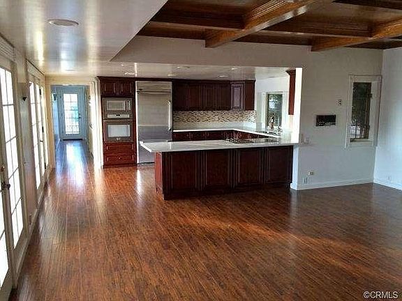 RECENTLY UPDATED! Magnificent Mediterranean-style home with pool in an enclosed gated courtyard perfect for entertaining. Brand new kitchen with stainless steel appliances (including built-in fridge, oven, and microwave), beautiful granite countertops, and new cabinets. New paint and flooring throughout home including bathrooms. Formal dining room with unique crown molding and carved ceiling. All window and door framed are fluted with plantation shutters throughout. Ash wood coffered ceiling in family room with french doors that open to the courtyard. Spacious 3-car garage with plenty of space for storage.