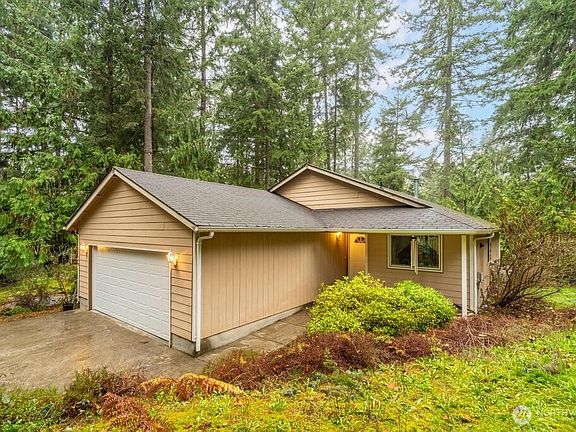 Estate Sale! Charming 3 bedroom, 2 bathroom home located in a picturesque gated community. This home features a vaulted living room with a cozy wood-burning fireplace, hardwood entry, heat pump with air conditioning, a spacious deck, and a large 2-car garage. Plus, enjoy approximately 800 sq. ft. of additional storage space beneath the home. Surrounded by beautiful natural settings with access to miles of walking trails, parks, lakes, and more. Home is sold AS IS.