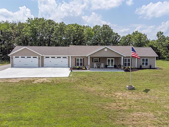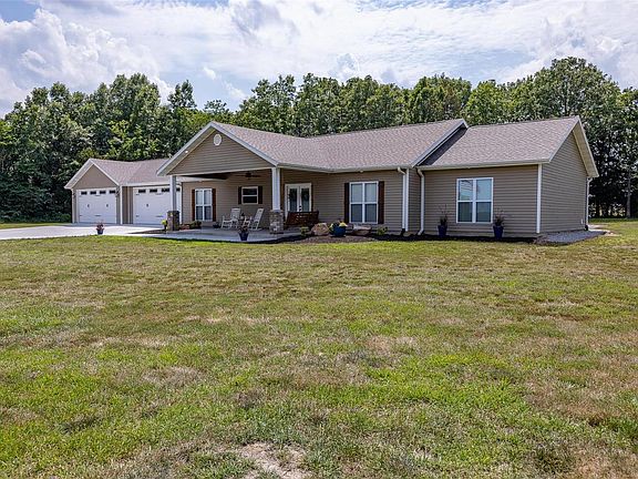 This rustic, immaculate, amazing property is a ONE OF A KIND. Start with the exterior. 10 beautiful acres, mostly open, great for your cattle, fenced, 1/2 acre pond (18ft deep), flag pole, concrete pad, front covered porch w/ swing, heated FOUR car garage, 1 bay drives through..screened in patio with kitchen, fire pit, custom hand made furniture that will stay..Can you just take in the hard work in this beautiful outside living area.. Land has the Perfect place for a pool. Now lets go inside & look at this top notch custom kitchen. hidden walk in pantry, slide outs, pull outs, drawers in drawers..all of it! custom cutting board for farmers sink, the beautiful knotty alder cabinets & granite counter tops are jaw dropping. Coffee bar, wine bar, super cool wine fridge changes color. Home is 1916 sq ft, garage is 1380 & back patio is 840sq ft. Open concept with split bedrooms. Master has the plushest carpet! Large walk closet. HVAC 1 year old, low bills.
