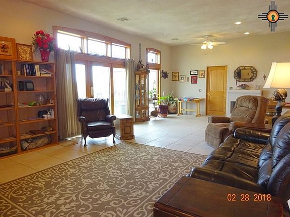 Wide Open Spaces in Southwest Desert setting. 3 bedrooms, 2 baths, 2368 sq ft on 8.16 acres. Air strip community, Easy access to Downtown Deming NM and Las Cruces NM and airport at El Paso, Texas. Homes features: excess closets and storage spaces, windowed wall living room and dining room with two 2-sided fireplaces, one into Master Bedroom w/dressing room and custom designed closets and master bath. Handicap accessible. Kitchen w/center island cook top, double convection/regular ovens. raised dishwasher, double sink, food pantry, cooking equip pantry, and more. Rear grill patio, turfed patio, garden area and storage building. 800 sq ft man cave workshop, 2 car att garage, Fruit trees, RV Hook up and an Air Strip for you 'fly-in' friends. Call Micki to see this fabulous property with surrounding mountain views.