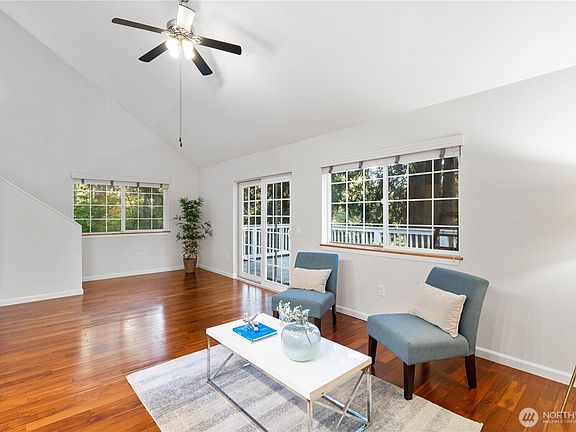 Loft areaSharp galley kitchenPrimary bedroomExpansive deckSurrounded by beautiful greeneryVaulted ceilings