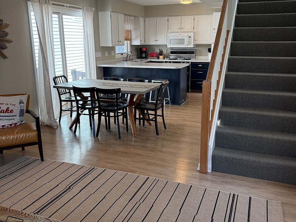 Adorable house with an open concept layout walking distance to both Lake Mac and Lake MI. Enjoy Michigan's beautiful sunsets and walk back to your fully furnished cozy home with ample closet space.