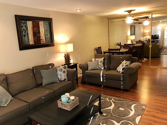 Nestled in the peaceful hills of one of the most desirable neighborhoods: Fullerton's sought-after Westside Community. This community sits across the 105-Acre Ralph Clark Regional Park, surrounded by lush greenbelts and mature trees. Truly the best location in the tract, no neighbors to the front and partial city views. NO STAIRS. Generous sized one bedroom & one bathroom all in one level. Upgraded front door, warm and comfortable living room, gorgeous wood flooring trough-out. Spacious kitchen with Granite countertops, upgraded appliances (stainless steel microwave & dishwasher), trey ceiling and casual dining area with ceiling fan. Handy inside laundry (stacked washer and dryer included). Molding & baseboards, mirrored closet doors and recessed lighting throughout. The bedroom has his and her closets and ceiling fan. Enjoy a beautiful large fully fenced patio, also perfect for pets, gardening, BBQ & morning coffee. One carport plus plenty of guest parking nearby. Surroundings are very well kept by Association. Convenient location, close to shopping, banks, restaurants, grocery markets, parks, transportation & golf courses. Cats/Dogs Allowed, certain breed restrictions. Water and Trash are included. All appliances included (with washer/dryer) No smoking within the residence.