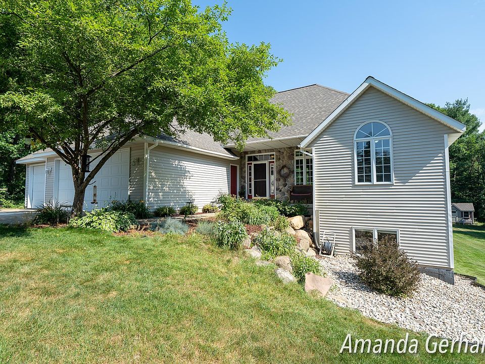WELCOME HOME! You will love this quiet location of a 5 bedroom, 3.5 bath home within minutes from US 131, but located on a private drive with mature trees and large lots. This home features an open floor plan with 2 bedrooms on the main floor, including an owners suite with a tiled shower, jet tub, dual vanity and walk in closet. The guest bedroom has its own full bath on the main as well. You will enjoy walking out on a two-tier deck to see deer and turkey in your backyard while heading out to take a swim in the built in above ground pool. Pool is approx 8 ft deep in the center and has a new fiber. Storage abounds in this house and has option for in home office. Roof replaced in 2016 and home comes with a one year warranty as well.Flooring concession for main floor are possible.