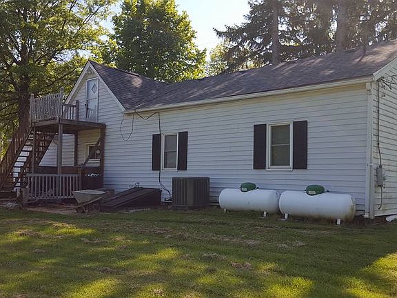 Completely updated and remodeled farm house in Highland Schools! This home features 3 bedrooms and 1 bath on the first level. Brand new hardwood flooring, new kitchen cabinets, new appliances and updated first floor bath! You will find a wonderful upstairs unit that is great for that growing teen, used as a mother-in-law suite or even as a 1 bedroom rental with private bath at $595 per month in extra income! Both levels have separate electrical panels so each unit can pay for their own usage! If a two unit home is not for you, enclose the exterior stairs and make one family home. Play set, newer windows with transferable warranty, TRANE Furnace and AC, new hot water tank, new sump pump, 10-car garage w/10,000 lb lift and 200 amp service, horse barn, city water. Wont Last! Hurry!