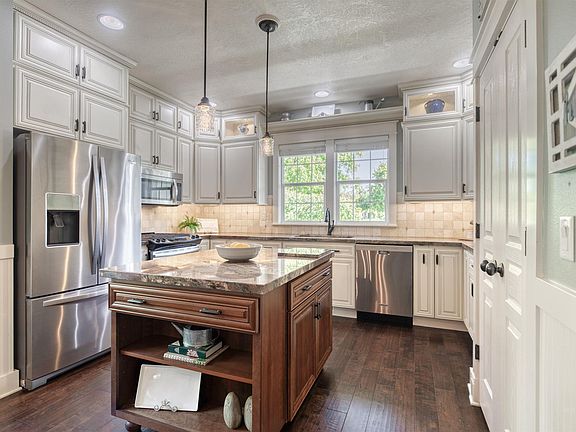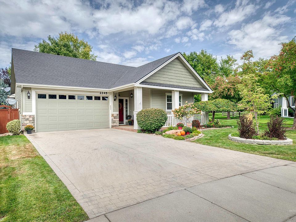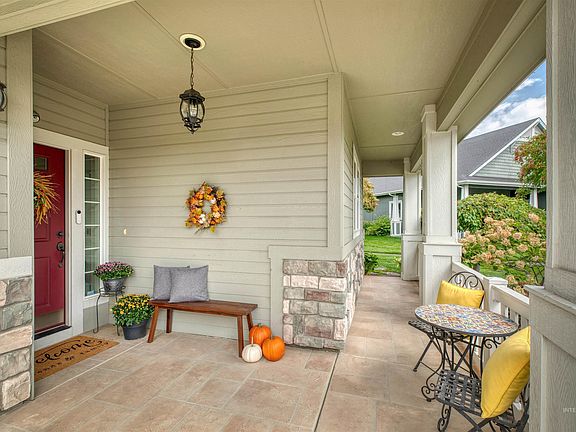 Discover this charming home in the coveted Woodbridge subdivision of Meridian, offering a family-friendly community and convenient access to the top-rated West Ada School District. This home features a functional and open layout with a beautiful kitchen, stainless appliances, granite counter tops with an attractive island, an appliance garage, and updated lighting above the island. The living room gas fireplace is perfect for cozy evenings. Enjoy the benefits of the pressurized irrigation for your lawn as well as the community pool. The beautifully landscaped yard includes vibrant perennials, fragrant blooming shrubs, mature trees, and grapes running along the fence. Relax to the sounds of the fountain, enjoying a peaceful retreat in your own backyard. A bonus feature of this well maintained home is the newer sunroom that the seller added off the back of the home with views of the warm landscaping and the beautiful green common area park and pathways.