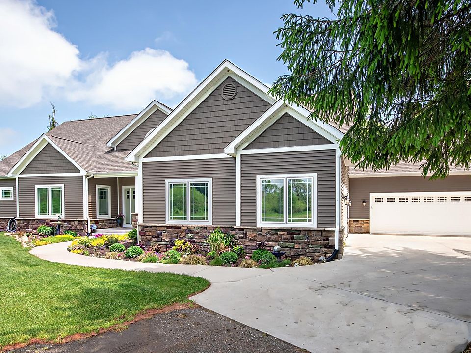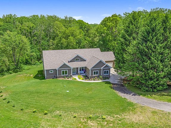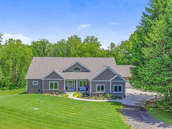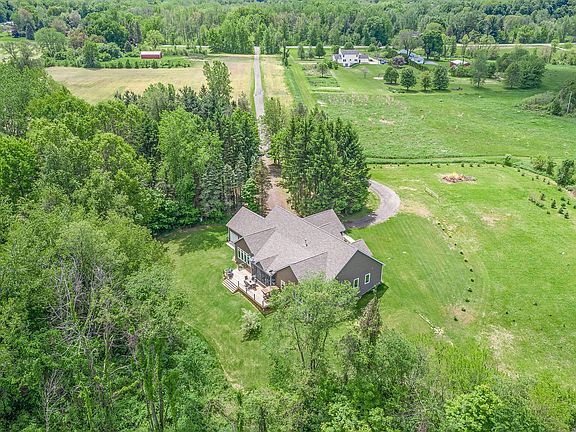 AMAZING Ranch built in 2014 located on 17 1/2 acres in wine country! Only 1 1/2 hours from Chicago & short a distance to local beaches. Perfect location, hidden far off the road with wonderful privacy & lemon creek along north side of property. Woods, pond, barn, deck, covered front porch, whole house generator, geothermal system & much more. Just under 3,000 sq. ft. on main floor, plus a large screened in porch. His & Hers garages (total of 4 car) Gorgeous hardwood floors, chef's kitchen, cathedral ceilings, main floor laundry room & extra wide hallways. Master suite offers 2 walk-in closets, low threshold tiled shower & soaker tub. A guest suite located on main floor w/attached full bath, plus an additional guest suite located in the basement. Your overnight guests won't want to leave! Don't miss out on this rare find. Make your showing appointment today. You won't be disappointed!