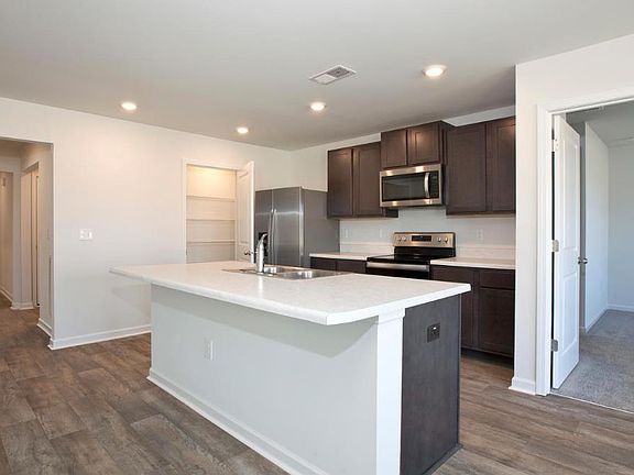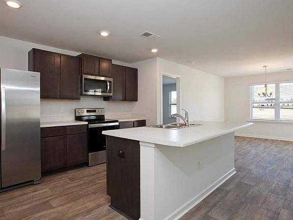 Welcome to SIDBURY STATION at Sidbury Farms. The Aria, from our Express Home Plans. Functional, affordable and open living one story living. Three bedrooms, two full bathrooms, and an open living area.
