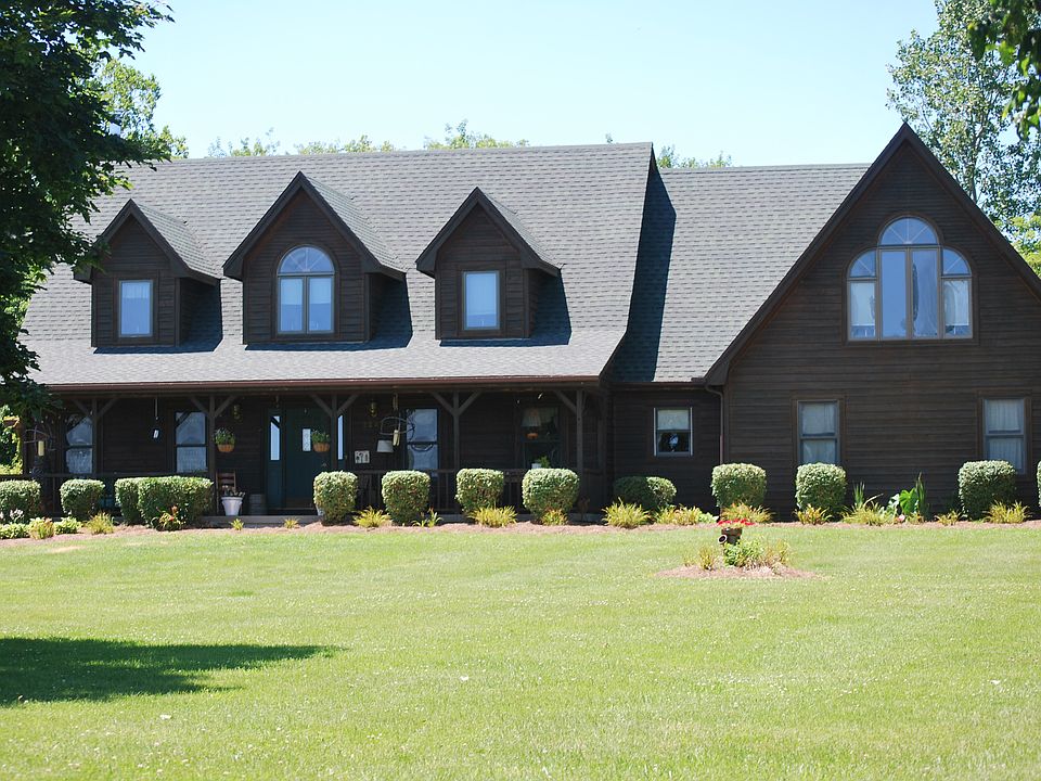 The lot is 3.5 acres. Custom built home with raised panel hickory kitchen cabinets.