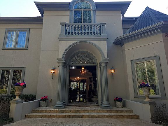 Custom built lakefront home on 2 acres in desirable Woodstock, GA. This impressive French-style home has a grand 2 story foyer with imported Italian marble flooring and Venetian crystal chandeliers. The large kitchen with breakfast area and keeping room features two ovens, a massive island, walk-in pantry, and ample custom built French pine cabinetry. Also found on the main level are a library and great room each with a fireplace as well as sitting room and conservatory. The great room offers panoramic views of the lake and French doors leading to the main level patio. The conservatory overlooks the lake with 270 degree views and custom tile flooring. The Owner's suite offers a fireside sitting area with French balcony overlooking the lake. Owner's bathroom includes a jacuzzi tub, extra large tile shower, double vanity, and large dressing room with ample organization. Two additional upstairs bedrooms each with a sitting area, walk-in closet, and private bathroom. Finished terrace level is complete with custom bar imported from France, dining area, fireside sitting area, and guest bedroom. The terrace level opens onto a patio with gorgeous lake views, gazebo, firepit, and stone waterfall. Elevator shaft built in and wired - ready to be completed. Lake has fountain for aeration. Home is conveniently located just 20 minutes from downtown Alpharetta. NO LISTING AGENTS PLEASE. Buyer agent commission protected.