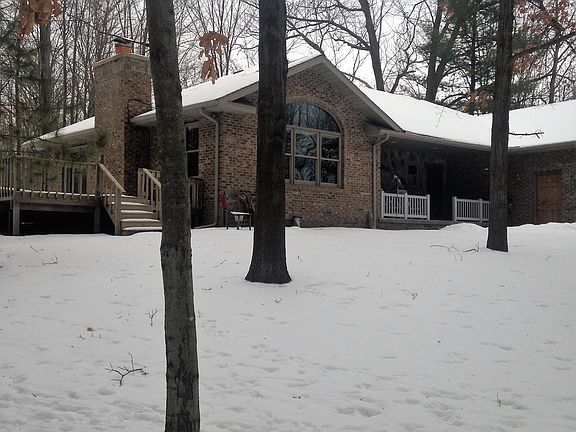 Beautiful quiet setting in the woods 850' off roadway. All Brick home with open floor plan. Full basement with 12 1/2' block with walkout to woods. All Oak trim with custom cabinets from Lloyd's Cabinet Shop. Corian counters in Kitchen and Bathrooms. Jacuzzi Tub in Master along with walk-in closet and deck. Hardwood Floors, Marvin Windows, 2 Decks, Heated 32X48 work shop with 2 10' Doors. 1st Floor Laundry Room. Stainless Steel Appliances. Trails through woods for 4 wheeling etc.