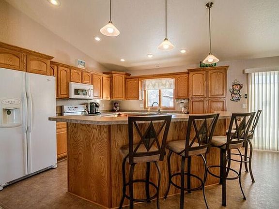 You will love this warm and inviting ranch style home with 5 bedrooms and 3 bathrooms. You can have informal family dinners around the very large kitchen island, or a sit down dinner in the dining room with a beautiful built in china hutch. Open floor plan allows a flow from living to dining and kitchen. Main floor has Master bedroom with full bath, additional bedroom, 3/4 bathroom and the all important main floor laundry. Downstairs is a spectacular living space with a large family room with a gas fireplace and three bedrooms. The full bath in the lower level is very spacious and has double sink vanity. New washer, new stove, new carpet have all been recently added. You can enjoy sitting outside on either the maintenance free porch out front or the maintenance free deck in the backyard. Lawn has sprinkler system and the yard is landscaped. The garage is 3 stall, heated, has water and drain. Seller is licensed real estate agent in ND.