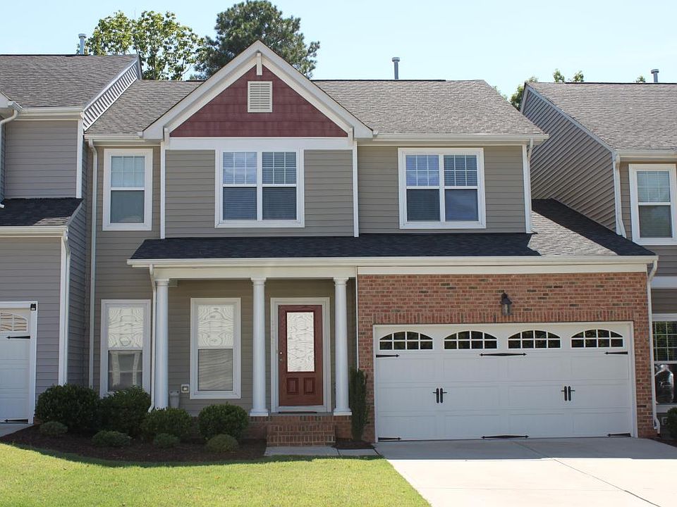 Upgraded townhome with all steel appliances, washer and dryer included. All closets have custom shelving. All fees included in monthly rent, including front yard maintenance, HOA/pool fees. Private back w/ woods. 3 bedrooms, 2.5 baths. Move-in ready. 2-Car Garage. Minutes from RTP, Cary, Raleigh. Owner kept and maintained townhouse. HoA maintained yard. Offering a monthly rate of $1695/mo. for well qualified renters who will sign a one year or more lease. Owner pays for front yard maintenance, HOA/pool fees, $150/mo. Must have good credit history.