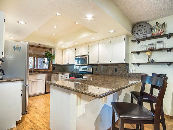 Sharp! and Well-Cared For! Single level move-in ready stunning home in the Country Club area. Open & Upgraded Kitchen, stainless steel appliances, and Beautiful Flooring throughout the home. Even more Impressive is you can Relax & Entertain on the huge Back Patio w/ built-in Wood Fireplace and Hot Tub! You'll be so happy to have the South-Facing Driveway in winter and AC in the summer--this home even sits on a wildlife corridor. It'll go quickly