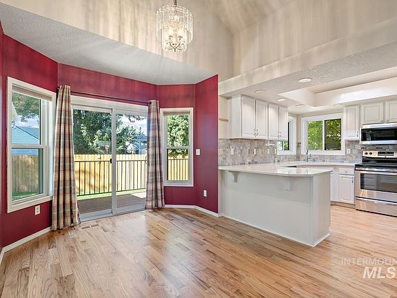 WELCOME to this beautiful home in the established neighborhood of Clover Creek! Home has an updated kitchen, complete with QUARTZ counter tops, white cabinetry and GORGEOUS stone tile backsplash! UPDATED master bathroom as well, attached to a SPACIOUS master bedroom and walk-in closet. NEW carpet throughout. Home boasts 2 separate living spaces, perfect for entertaining! PARK-LIKE backyard is fully shaded in the evening, making it the PERFECT PLACE to enjoy spending time! Large deck has a privacy screen attached. Solar panels are OWNED and make your power bills minimal even in the peak energy months of the year! Huge 3 car garage with two storage sheds! MAINETENANCE FREE gutters around the entire perimeter of the home! There is so much pride in ownership here! Come see it today!