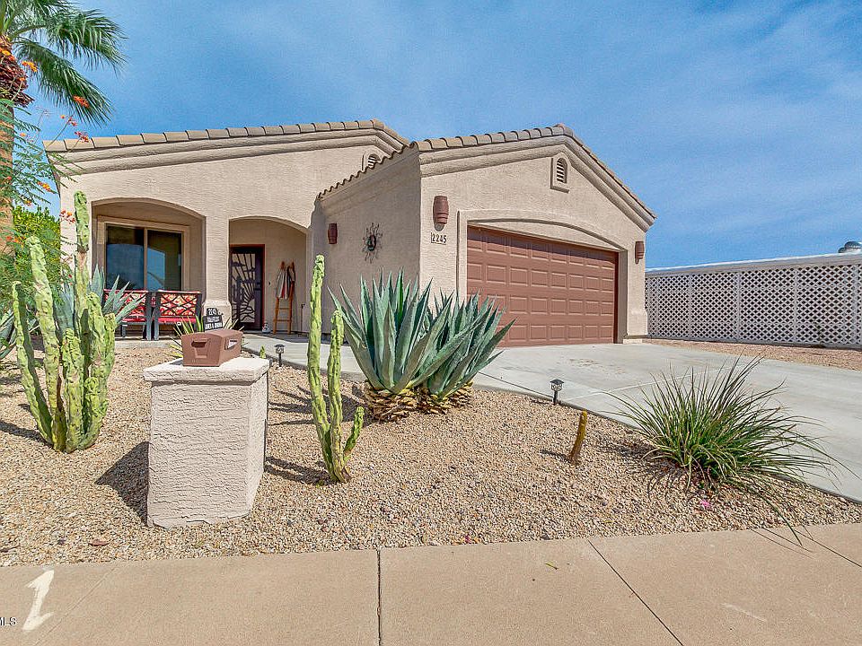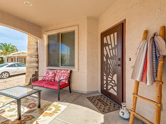 Welcome home! This light and bright 2 bedroom split floor plan with a den has neutral colors, brand new carpet, and the kitchen overlooks the family room. Master has good size walk in closet and the backyard is the perfect place to relax under the covered patio. Even has mature fruit trees. All furniture you see in the home is included. Community amenities include Golf Course, Pool/Spa, Clubhouse, Workout Facility and more all for you to enjoy!.
