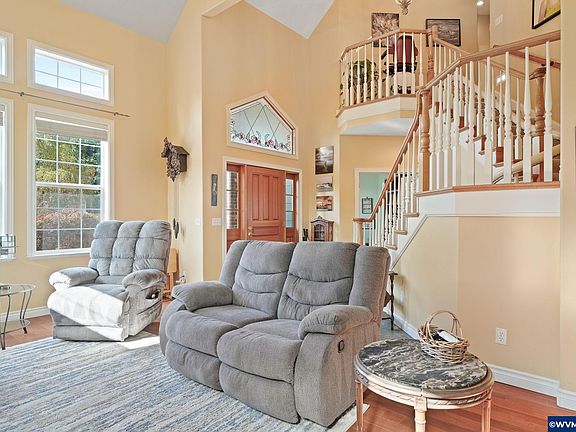 Beautiful Home in sought after neighborhood of Riverview Heights. Stately charm awaits in this custom delight on near 1/4 ac corner lot. Soaring vaulted ceilings in the frml LR, classic staircase, frml dining w/wet bar, updated kitch w/breakfast bar, custom cabs, pantry, wd flooring. Breakfast nook w/French drs to patio. Main lvl primary w/2 sinks, jetted tub, skylight & bay window & outdoor access. Util rm w/sink. 2 BR up. Den w/closet. Bonus Rec Rm. 2 cov. patios, large attic storage. Quality throughout!