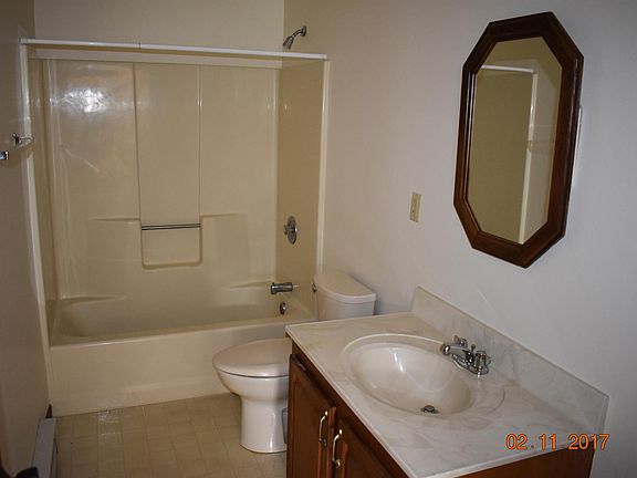 2 person occupancy, 2 Bedroom, 1 bath, 1st floor apartment. Includes refrigerator. Living room/bedrooms are carpeted. Stove, hot water heater, water, sewer, trash and off street parking. Tenant pays electric. NO WASHER/DRYER HOOK UP. NO PETS. Owner pays for trash, sewer & water. Tenant pays electric, cable & phone.
