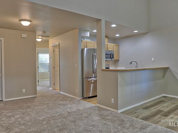 This spacious condo, positioned as an end unit, offers a large master suite and a generous loft area complete with a built-in desk, making it an ideal space for both relaxation and productivity. Its central location provides easy access to numerous amenities, as well as being just a few miles from Boise State University and downtown Boise, which adds to the convenience of urban living. Recently refreshed with new paint and flooring, the open floor plan, accentuated by vaulted ceilings, creates a welcoming atmosphere. The low monthly HOA fees cover exterior upkeep along with water, sewer, and trash services, ensuring a hassle-free lifestyle. Residents will appreciate the modern conveniences of stainless steel appliances, as well an included washer/dryer making this condo not only comfortable but also equipped for modern living. This is a turn-key condo and an excellent choice for a new home or investment opportunity.